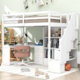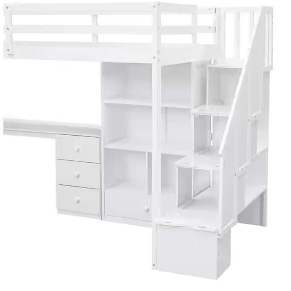 Be the first to review “White Twin Size Wood Loft Bed with L-Shaped Desk and 4 Drawers, Cabinet and Storage Staircase”